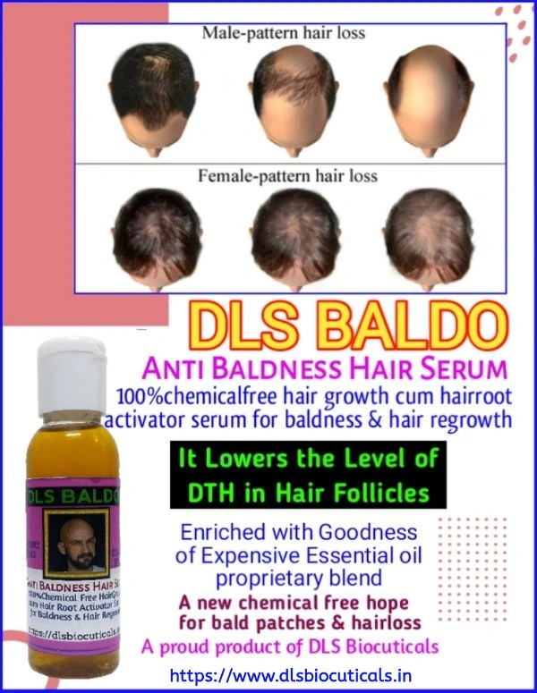 DLS Baldo is a 100% chemical free hair growth cum hair activator serum for Baldness and hair regrowth.
