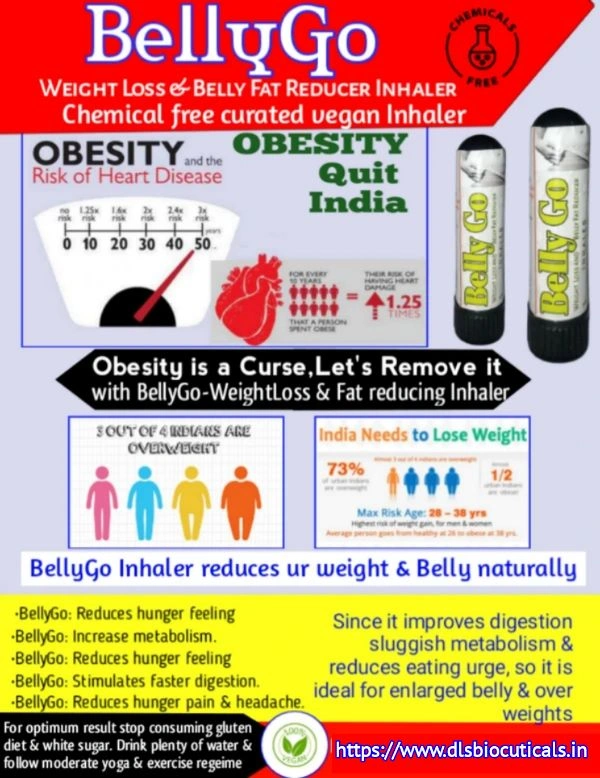 BellyGo is a chemical free natural curated & handcrafted vegan Inhaler which is instrumental in over weight and belly fat without any harm and side effects. This is an innovative product and very first in its segment, which gives you liberty to loose your weight and belly without using chemical based synthetic drugs which are causing cancer, diabetes, thyroid, depression and even heart problems.