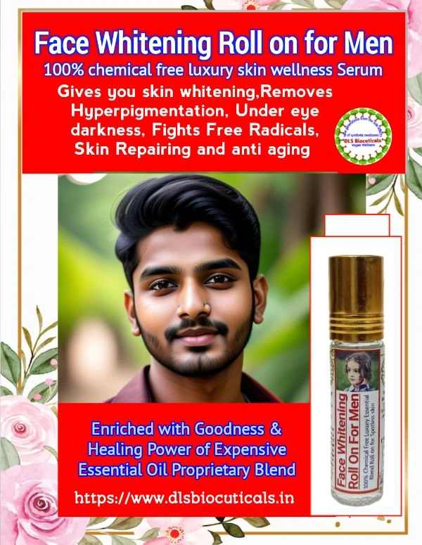 DLS Face Whitening Serum Roll on for men is specially handcrafted for men. This is a 100% chemical free essential oil properitary blend extracted from flowers, fruits, vegetables and herbs. It contains goodness and healing power of expensive essential oil blend. This a beautiful alternative of chemical based synthetic creams and other beauty products., causing cancer. This product save you from any type of cancer including skin cancer. DLS Face Whitening Roll on gives you skin whitening, removes hyperpigmentation, black spots, under eye darkness. It repairs your skin, fights free radicals. It is a good anti aging serum gives you radiant skin without any harm and side effects.