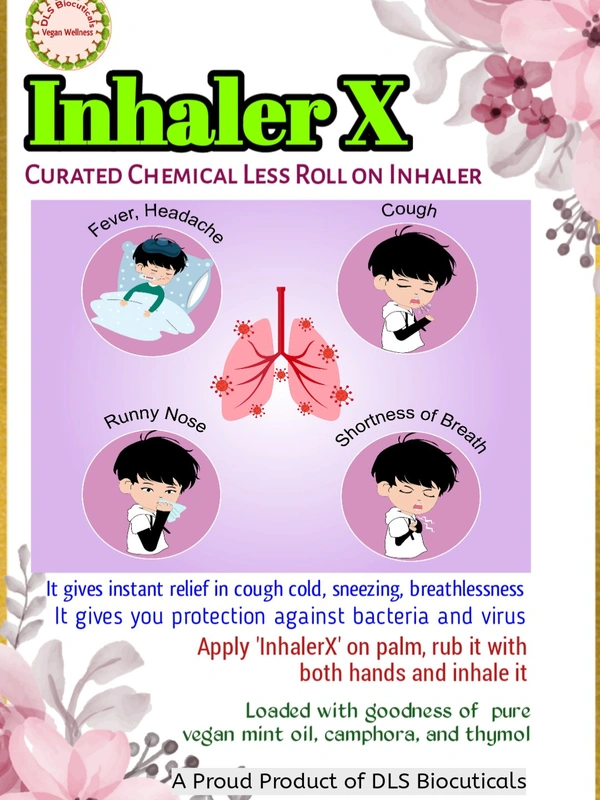 Inhaler X is a 100% chemical free curated and handcrafted with Love vegan Roll on inhaler. It gives instant relief in cough cold and in breathing problems. It gives you protection from bacteria and virus.