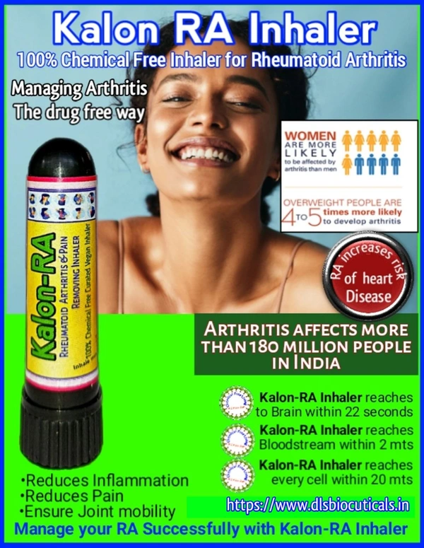 Kalon-RA Inhaler is chemical free curated hand crafted vegan Inhaler, has no side effects, habit forming. It is safe for every one. It gives you relief in Rheumatoid Arthritis.