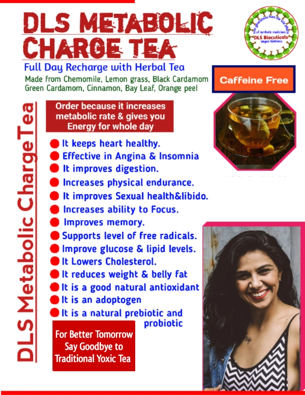 DLS Metabolic Charge Tea increases Memory/Focus. It keeps your Heart Healthy and Lowers the Cholesterol. It is effective in Angina and Insomnia. It improves Digestion/Sexual/Libido.