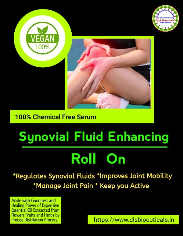 The regular use up to minimum 8 weeks of Synovial Fluid Roll on may Enhance & Regulate your Joint mobility/Comfort. It may give you freedom from Pain, Discomfort. This is the first non invasive harmless and side effectless product which can Enhance/Regulate the Synovial Fluid. It gives you freedom from Joint Pain/Discomfort.