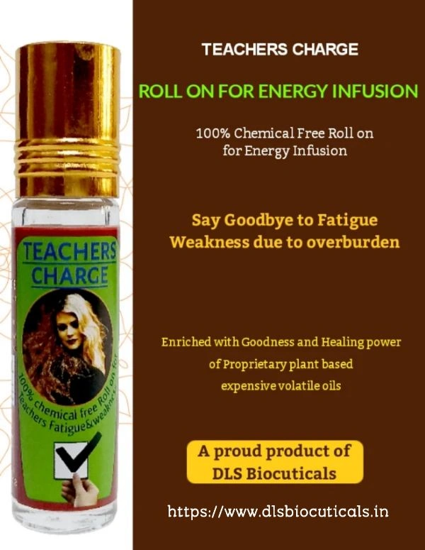 Teachers Charge: Roll on for Energy Infusion is specially crafted for Teachers with 100% chemical free ingredients. It is made of properietory blend of expensive pure volatile oils from flowers, fruits and plants by precise distillation process.