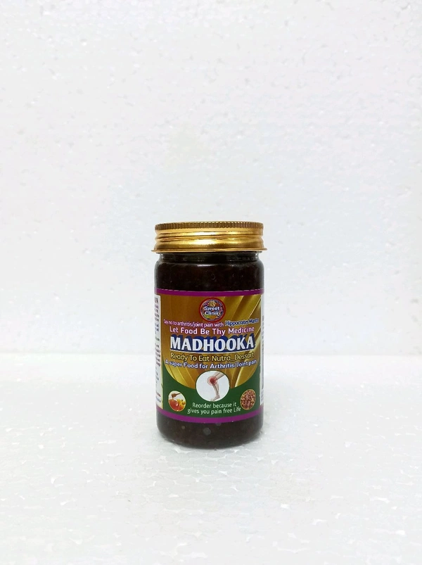 MADHOOKA: Ready to Eat Nutra_Dessert is a superfood for the management of Arthritis and joint pain. It is 100% chemical free daily dose of pain free living. MADHOOKA is enriched with pure honey and madhuka Longifolia. It has no added sugar, color, preservatives, additives, no emulsifiers. It has no side effects, harm and habit forming.