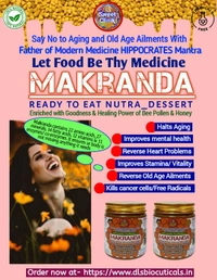 Makranda is a natural super food fusion. Which gives you all the vitamins, minerals, enzymes etc., which keeps you full of energy throughout the day. Makranda is 100% chemical free superfood fusion enriched with honey & bee pollen. Both these substances, honey and bee pollen, are not manufactured by humans.It is a beautiful gift of nature to humans which despite being a super food, addresses many health issues.