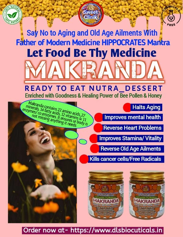Say no to old age ailments with Makranda: Ready to Eat Nutra_Dessert. Makranda is able to reverse Old Age Health Issues since it is 100% Chemical Free and Natural. Enriched with Goodness and Healing Power of Honey and Bee Pollen. It gives you each and every nutrition required by your body. It can recharge you for the whole day. Apart from old age ailments Makranda is able to address health issues of all age groups, including youth and females.